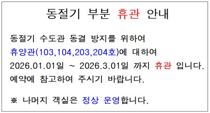 1. 화재 예방과 시설의 안전을 위하여 기간을 정하여 사용을 통제하고 있습니다.