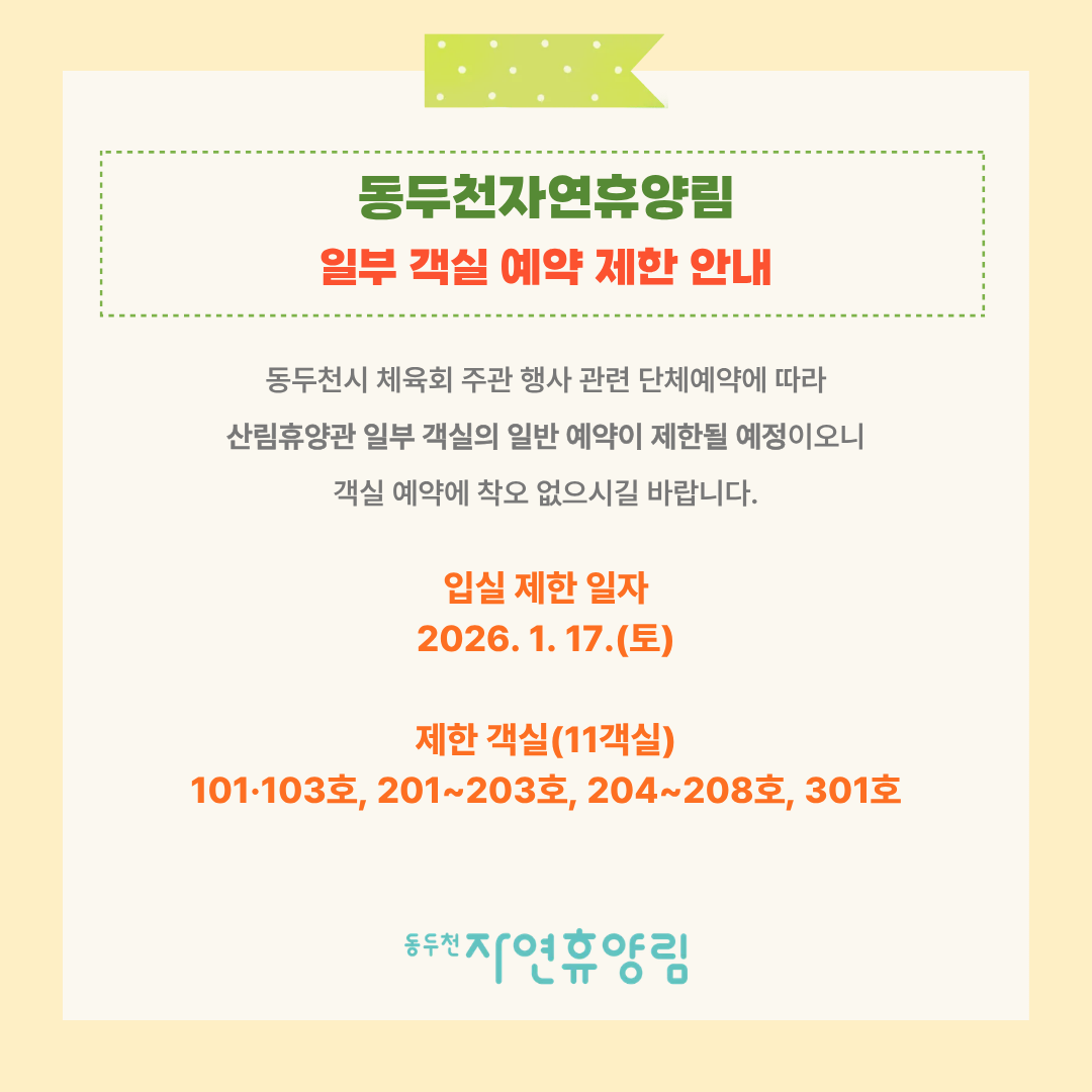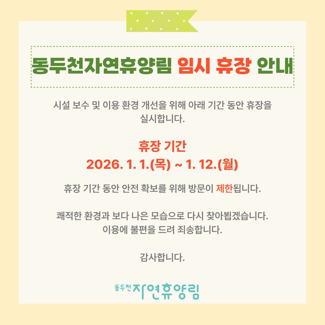 *숲나들e 홈페이지와 동두천 자연휴양림 블로그(동두천 포레스트)에도 안내글이 게시되어 있으니, 참고해 주세요!