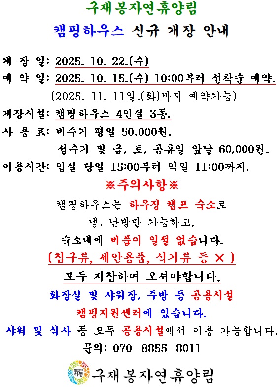 취소시 위약금은 자연휴양림 입장료 및 시설사용료 기준에 따릅니다.