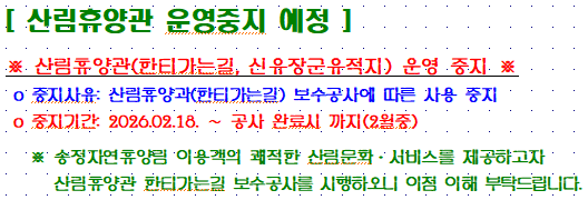 송정자연휴양림 현대화사업 공사 기간내 휴양림 이용 불편 안내