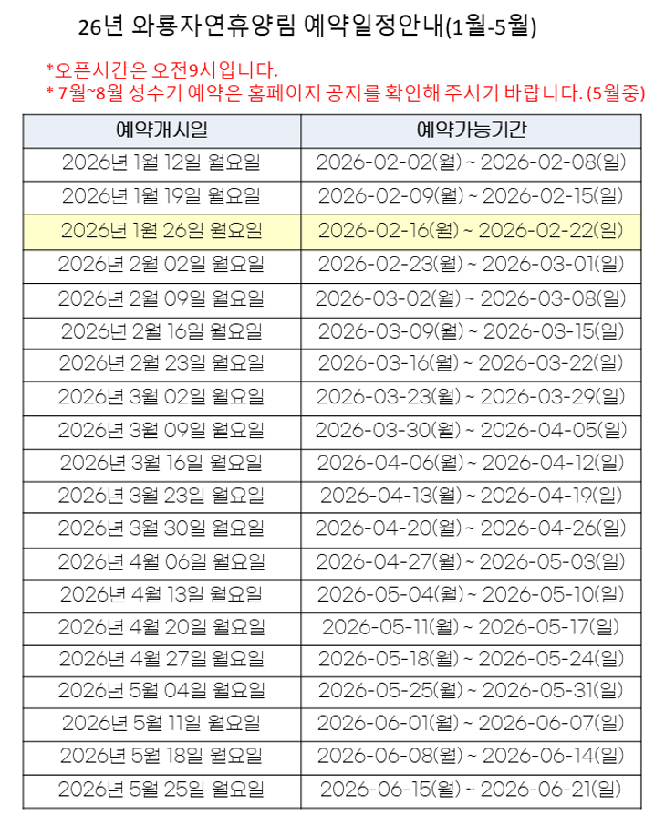 와룡자연휴양림 식당 및 매점 사장님의 개인사정으로