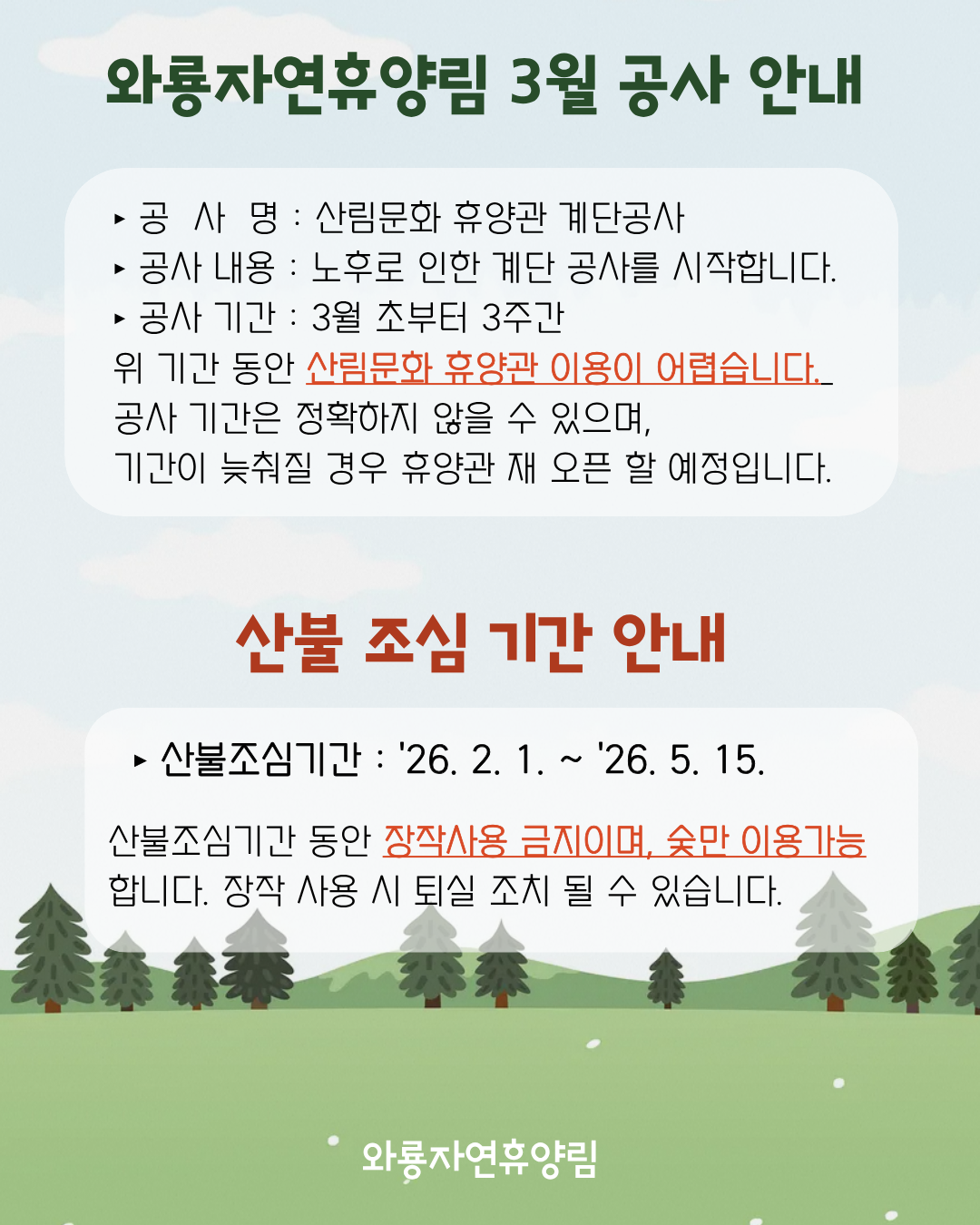 와룡자연휴양림 식당 및 매점 휴업안내