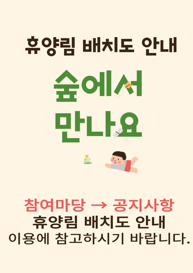 - 관내 교육기관 체험학습 연계로 인해 일반 숙박객 및 방문객분들의 숲해설과 목공예 프로그램이 일부 제한됩니다.
