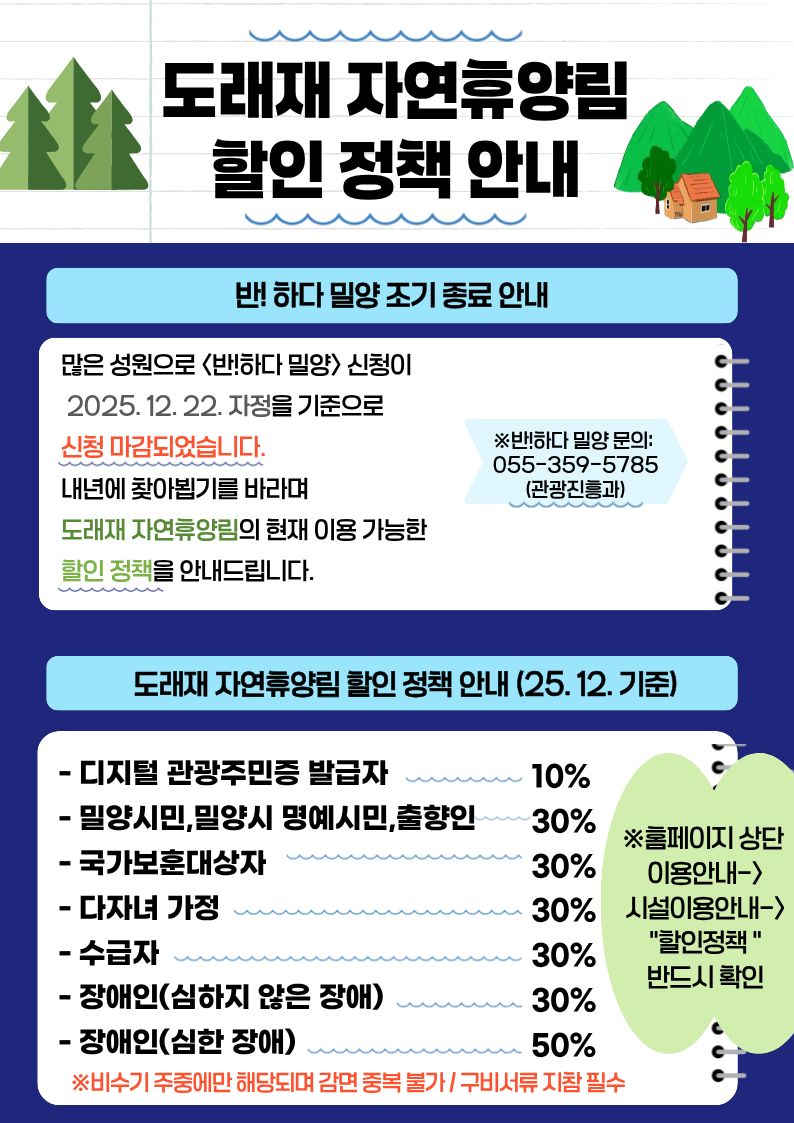 반!하다밀양 반값여행 조기 마감 안내(~12/22)