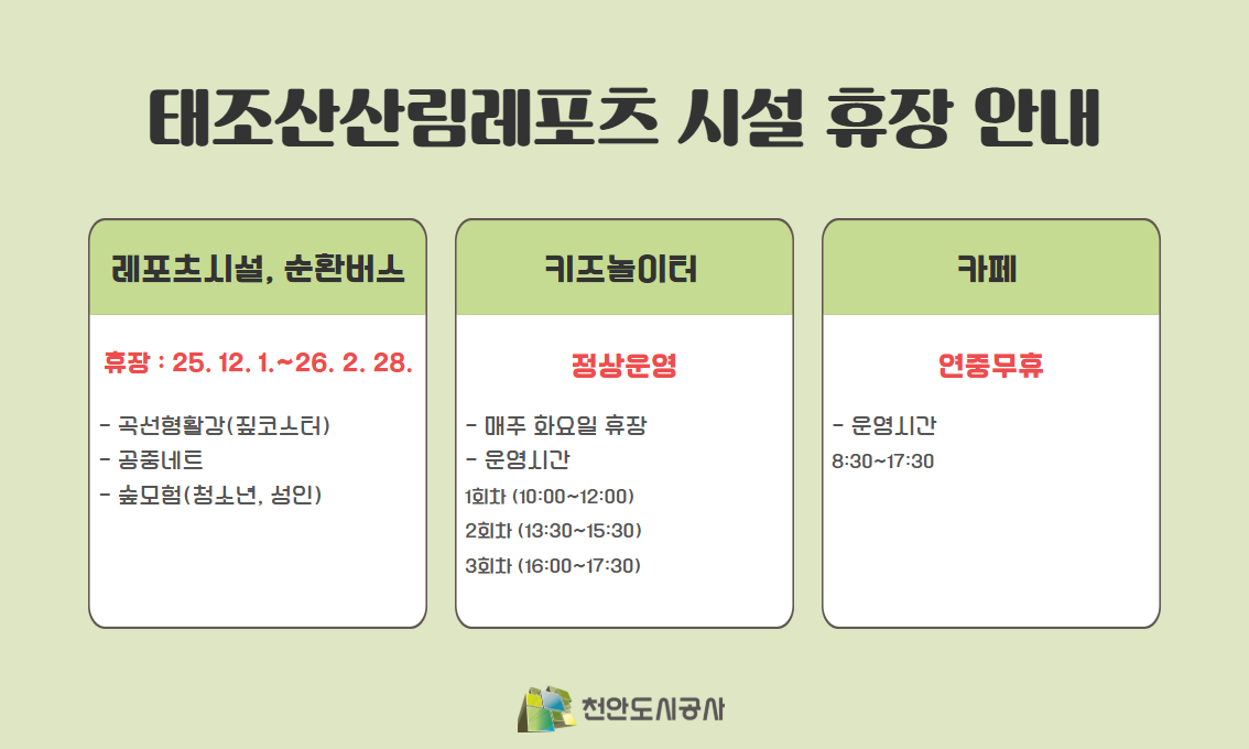 태조산산림레포츠단지 무료 순환버스 운영 안내(수..