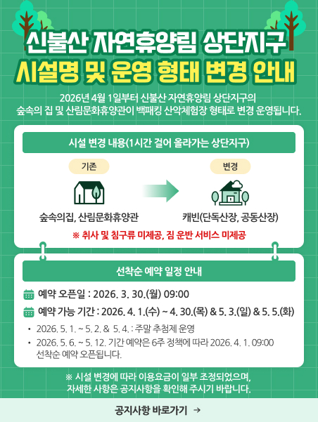 신불산 자연휴양림 상단지구 시설명 및 운영 형태 변경 안내