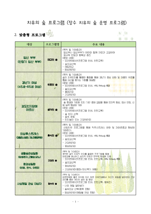 * 산림 치유지도사 인솔하에 프로그램이 진행됩니다.