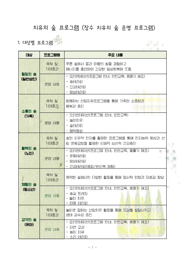 * 치유의 숲 모든구역은 금연 및 음식물 반입금지구역입니다.