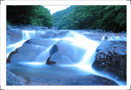 울창한 숲이 더위를 잊게 하고, 가을에는 기암괴석과 조화를 이룬 형형색색의 단풍이 눈을 즐겁게 하며, 겨울에는 고요한 심산계곡의 포근한 설경과 얼음 동산, 용미폭포의 빙벽이 절경을 이룬다. 동쪽 2km 지점에
