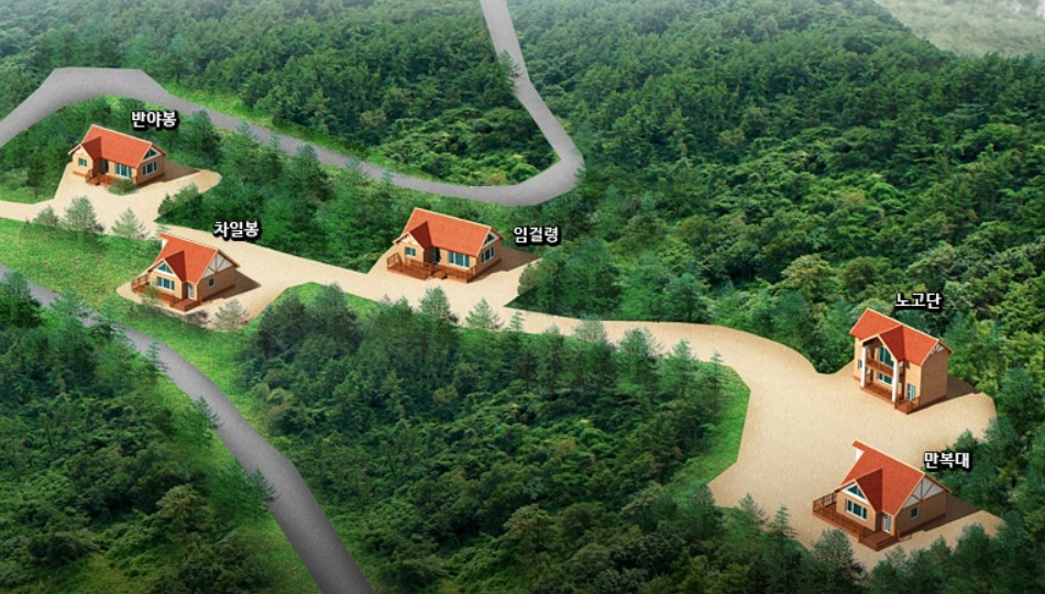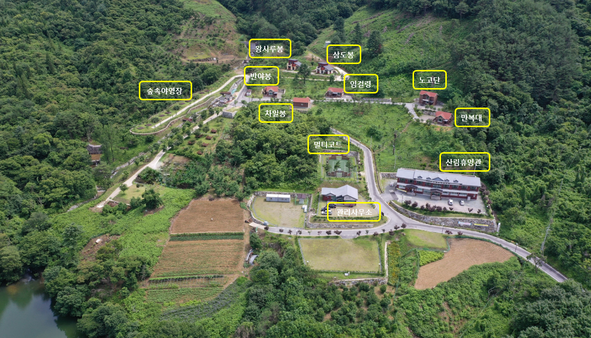 주변 수목원과 지리산의 아름다운 경관을 감상할 수 있는 숲속 힐링공간